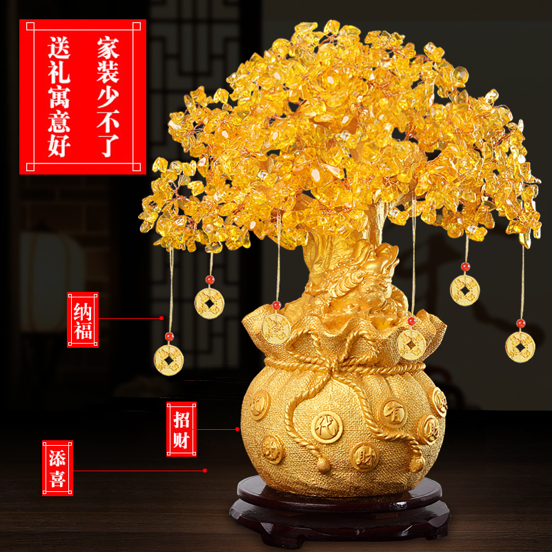 Yellow gold large citrine fortune Tree send 6 kinds of gifts Medium Citrine fortune Tree send 6 kinds of gifts Small citrine Fortune Tree send 6 kinds of gifts King size upgrade golden toad style send 6 kinds of gifts