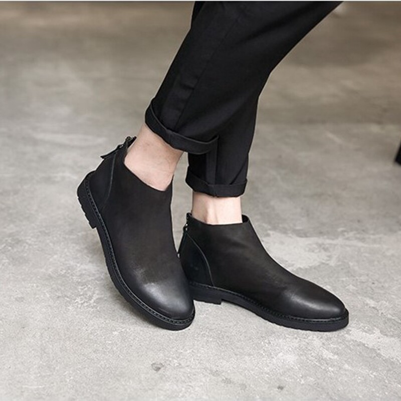 Winter Chelsea boots leather matte Martin boots men's short boots retro old cowhide plus velvet men's boots leather boots