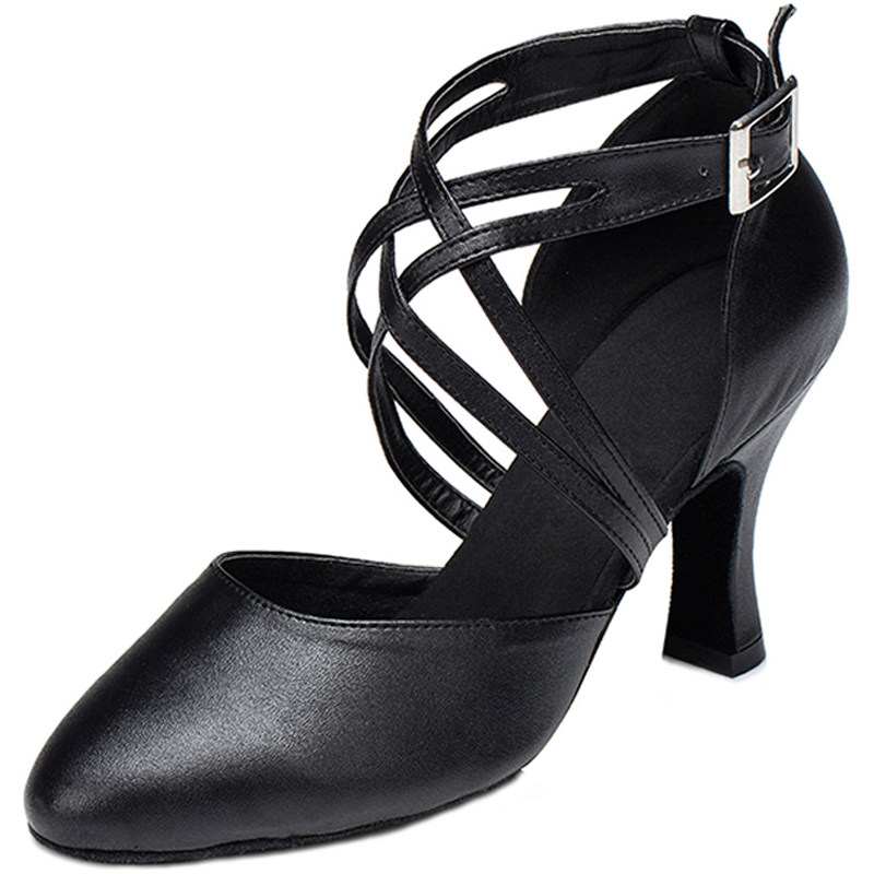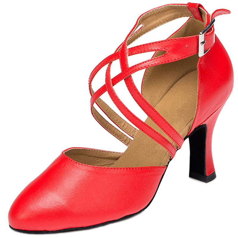 Latin Dance Shoes Adult Lady Genuine Leather Dance Shoes Morden National Mark Dating square Jump in dance shoes heel rubber base cow leather