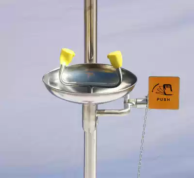 Stainless steel foot pedal eyewash compound type shower vertical eye wash device floor type spray eye washer factory