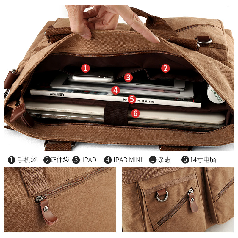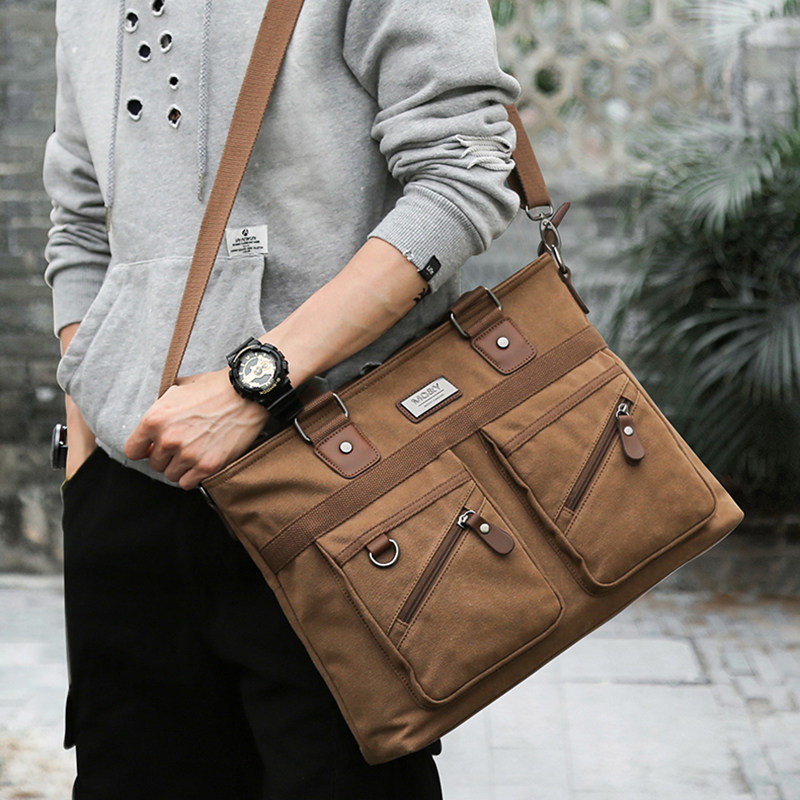 New business commuter briefcase man handbag canvas single shoulder inclined satchel bag for work bag big capacity computer bag