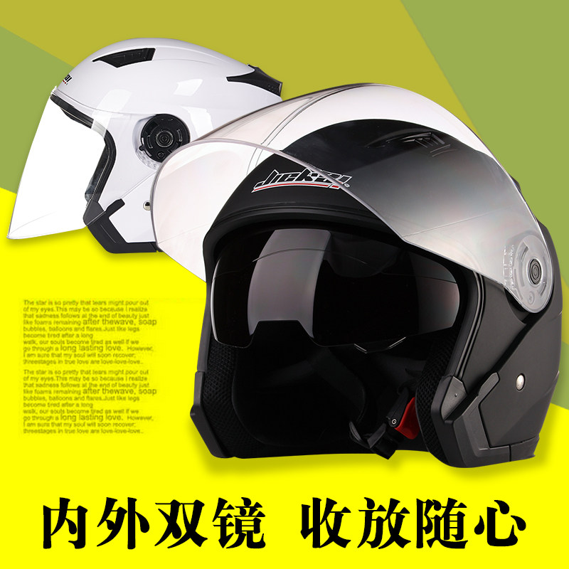JK winter locomotive safety helmet male and female semi-covered electric car four-season universal double lens half helmet safety helmet