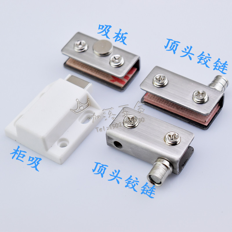 Stainless steel single open double switch glass cabinet door upper and lower hinge cabinet suction glass cabinet hinge cabinet suction-free drilling glass clamp
