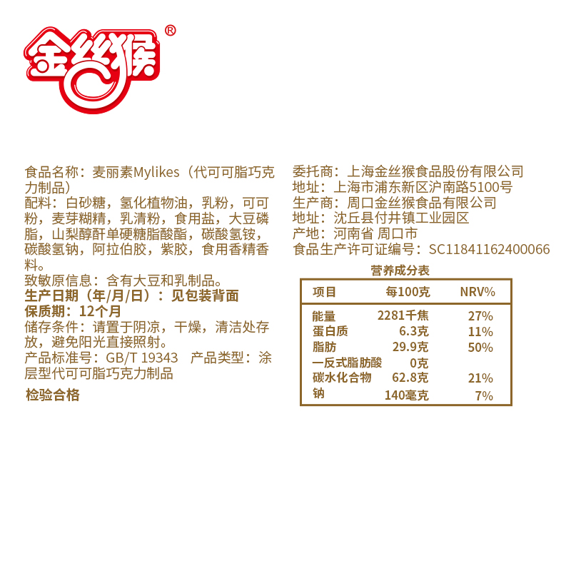 Golden monkey marisol small bag 23g sandwich chocolate children snacks candy (cocoa butter substitute)