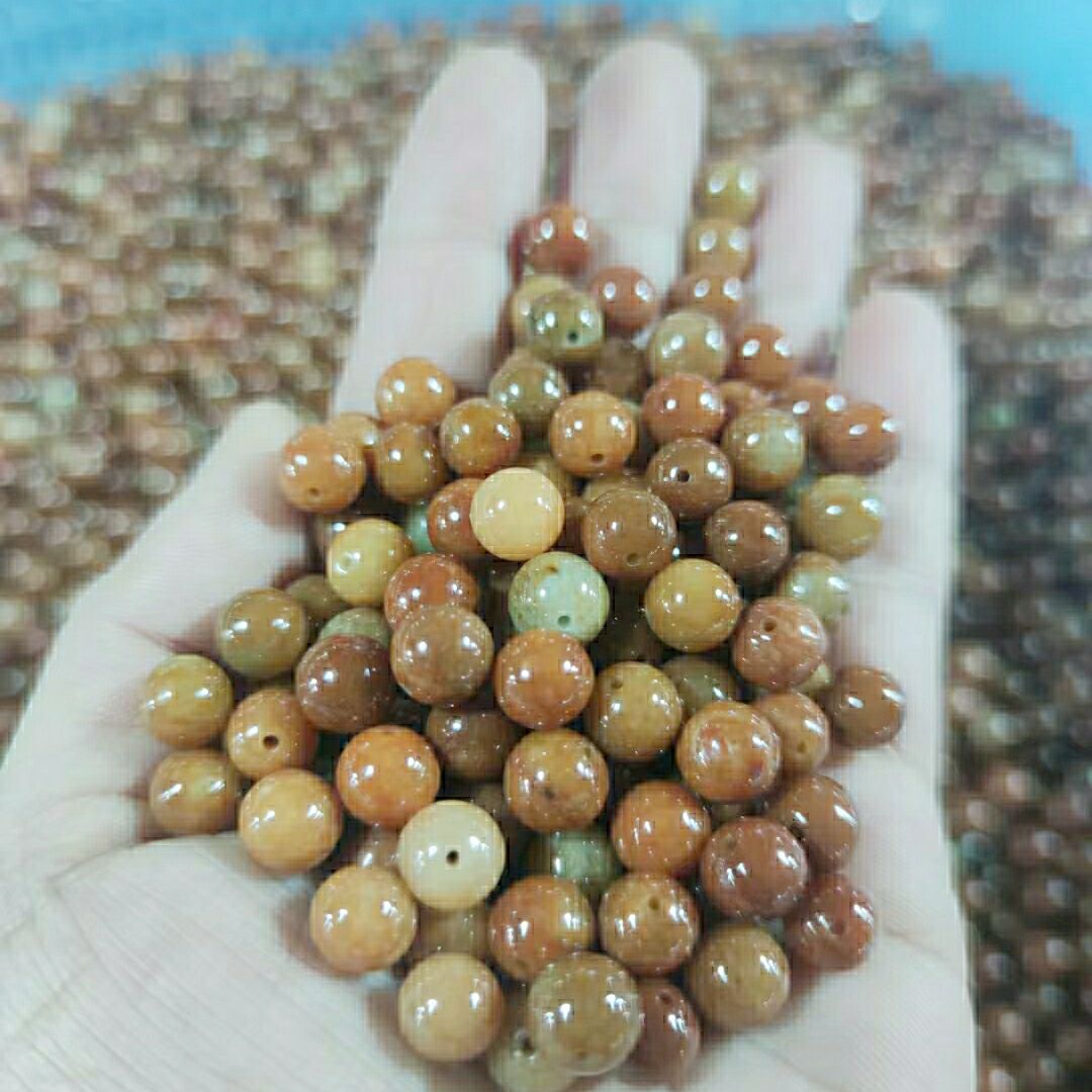 Natural Burmese jadeite loose beads a goods yellow jade beads DIY jewelry accessories women's men's hand bead necklace