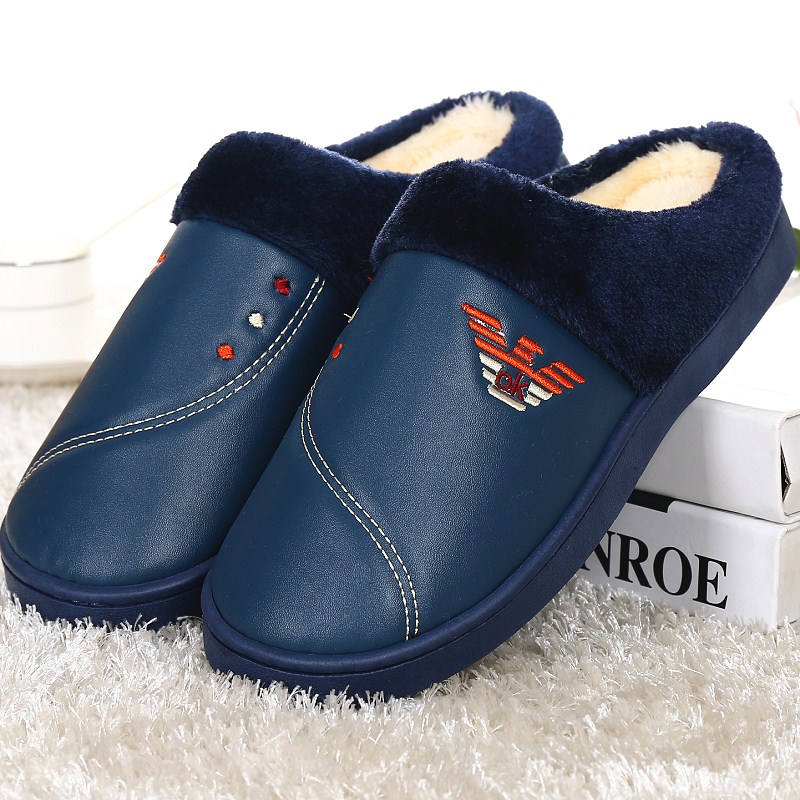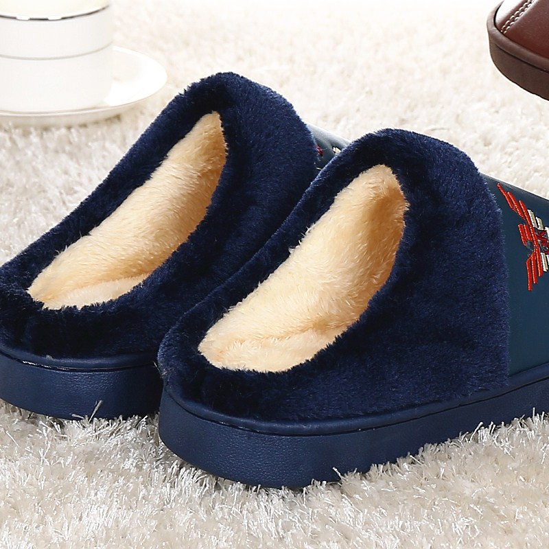 Winter men's cotton slippers thick bottom waterproof large size wool slippers thickened at home non-slip room plush slippers male