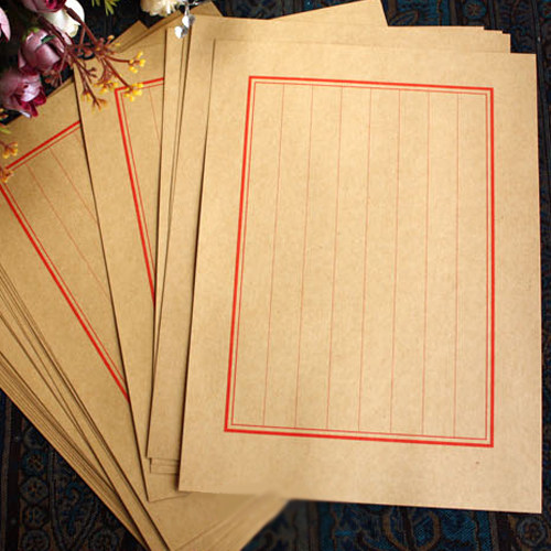 Ancient wind traditional Chinese writing texture 16 open white red vertical stripe Eight lines letter paper letterhead kraft 10 sheets per pack