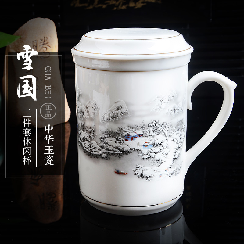 Xiangfeng hand-painted ceramic tea cup Flower tea cup Personal cup with lid filter Conference office tea cup Mug