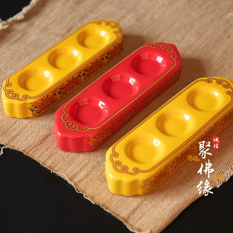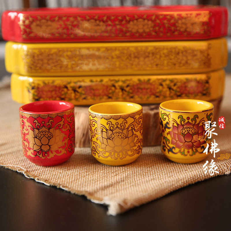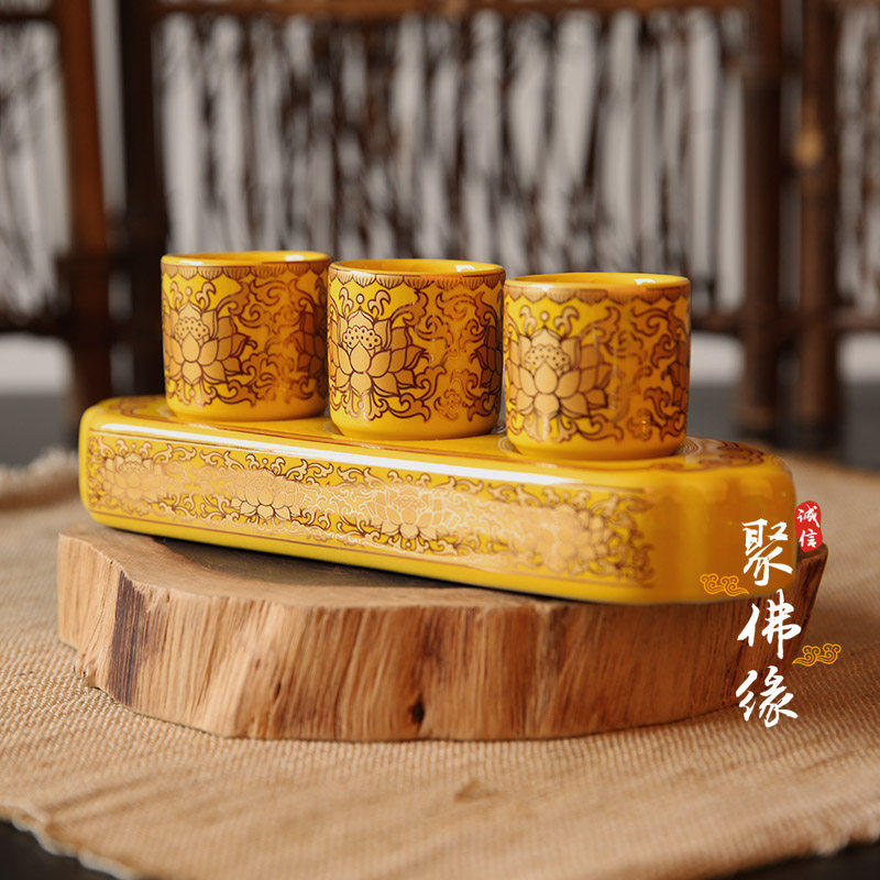 Set of ceramic lotus cup three consecutive cups God of wealth cup real gold Tang color yellow water supply cup water purification cup