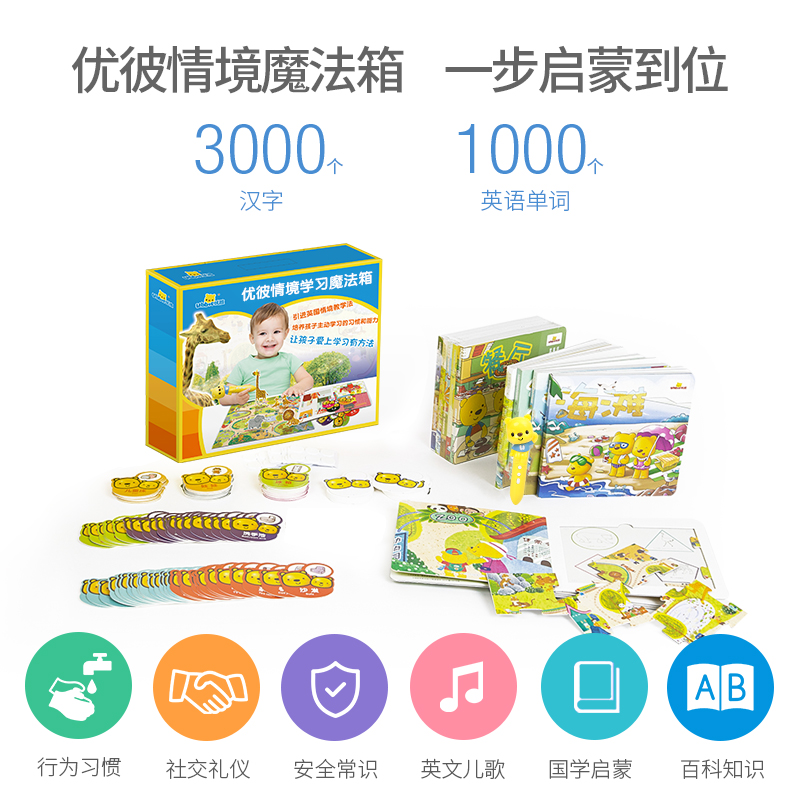 Youbi situational learning magic box (with blue dot reading pen) Youbi situational learning magic box(with red dot reading pen) (selling points do not shoot) Collection of 0-6 years old children commonly used knowledge contains 300