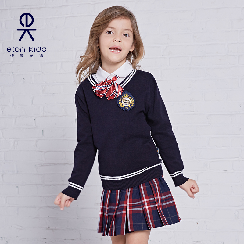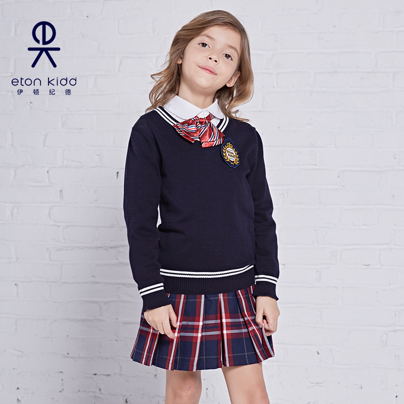 Eaton Guild primary and middle school uniforms for male and female children Hide Blue yellow side cover Knitted Sweatshirt V Collar Spring Autumn 09M101