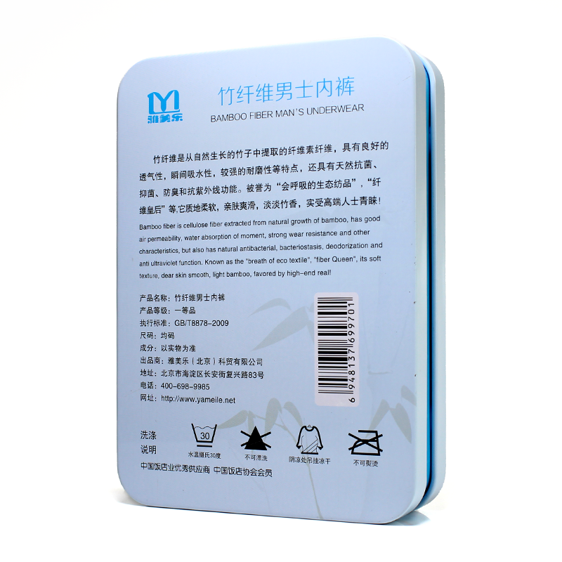 Bamboo Fiber Men's Flat Horn Panties (Iron Box) Ms. Bamboo Fiber Triangle Panties (Iron Box)