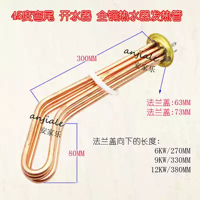 45 degree curved tail water boiler electric heating pipe all copper water heater heating pipe 6kw 9kw 12kw 380V