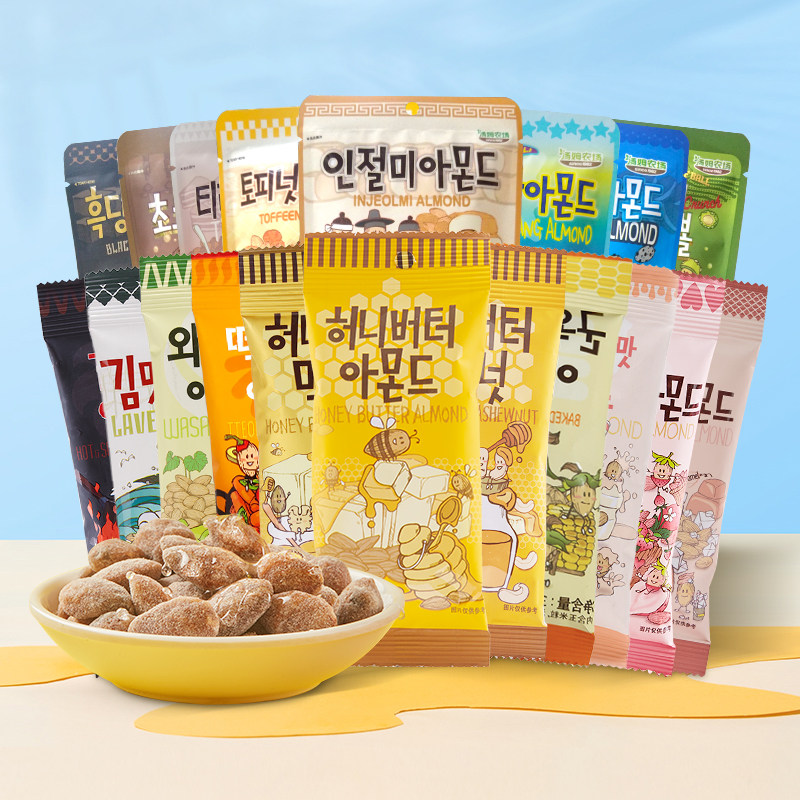 Honey Butter Almond 35g Caramel Salt Baked 35g Wasabi Flavor 35g Seaweed Flavor 35g Honey Butter Mixed Flavor 30g Honey Butter Cashew Nut 35g Strawberry Flavor 35g
