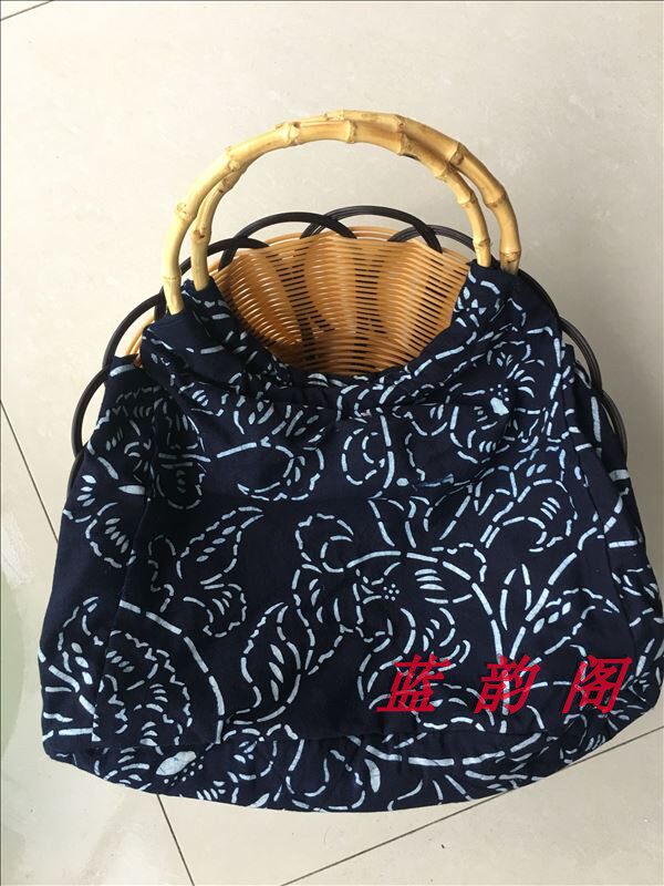 Hot Pins China Wind Bouquet Bag Blue Printed Cloth Bicolor Flowers Bamboo Ring Bag Hands Carrying Multicolored-Taobao