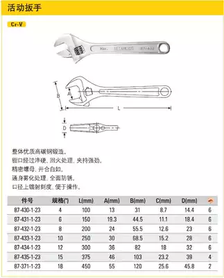 87-430-1-23 Adjustable wrench 4quot 87-431-1-23 Adjustable wrench 6quot 87-432-1-23 Adjustable wrench 8qu