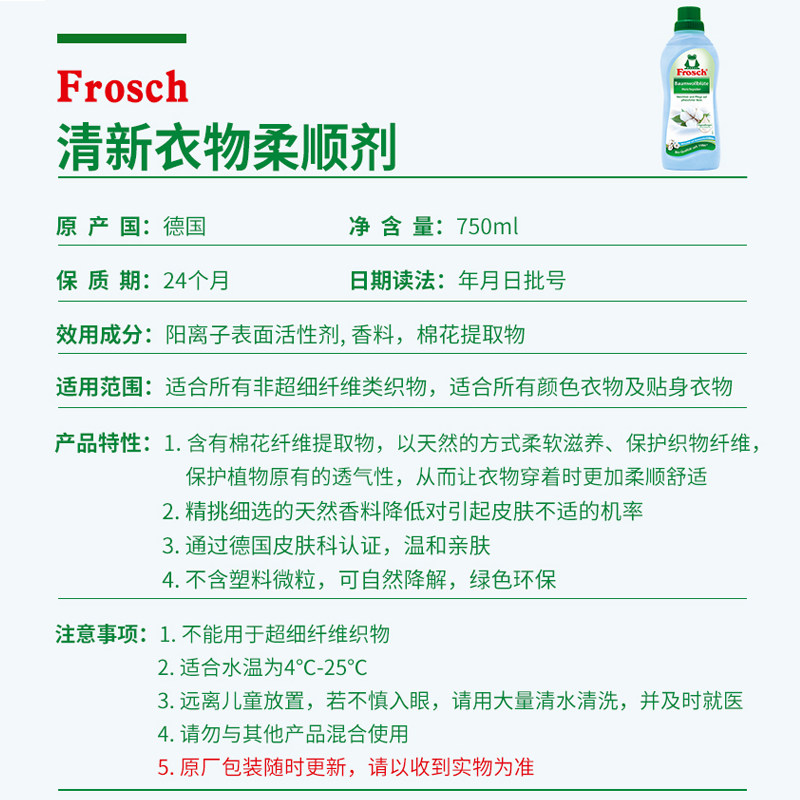 Frosch Germany original clothing imported clothing care liquid concentrated persistent perfuchproof and antistatic mild clothing softener