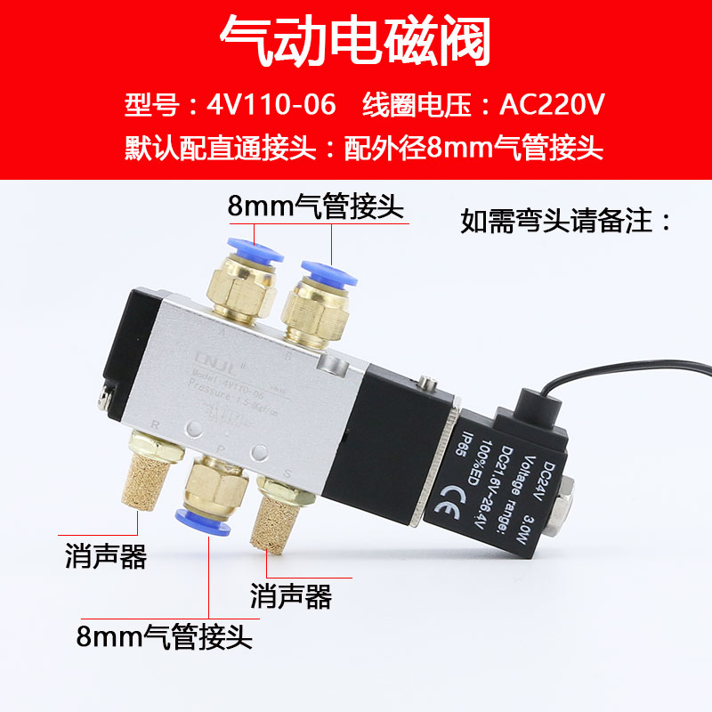 4V110-06 (wireless ring single valve body) 4V110-06 (AC220V)4V110-06 (DC24V) 4V110-06 with 4mm connector DC24V4V110-06 with 6mm connection Head DC24V4V110-06 with 8mm connector DC24V4V110-06 with 4mm connector AC220V110-06 with 6mm connector AC220V4V110-06 with 8mm connector AC220V