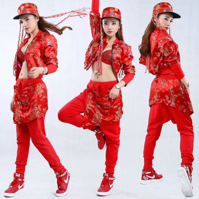 Chinese Wind Hip Hop Street Dance Women's Dress Red Beating Drum Women's Group Acting Out Of The JAZZ Female Stage Performance Suit Handsome
