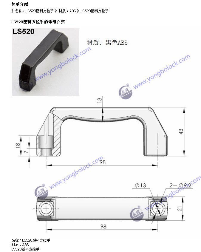 Seatan Lock LS520 Black ABS Pull Handle LS522 Nylon Plastic Handle LS519 Drawer Cabinet Door Distribution Cabinet