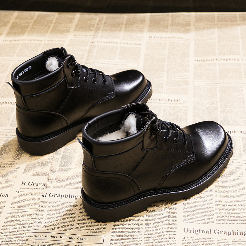 Winter plus velvet men's short boots wool warm cotton boots short tube leather wool one snow boots high tube cotton shoes Northeast