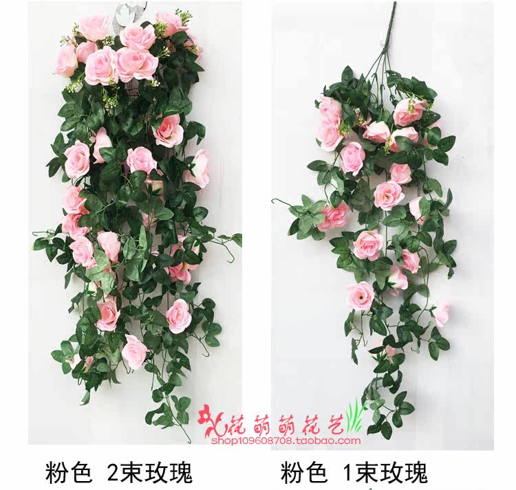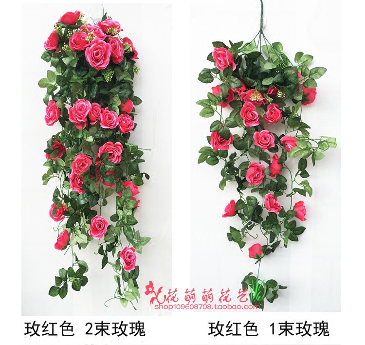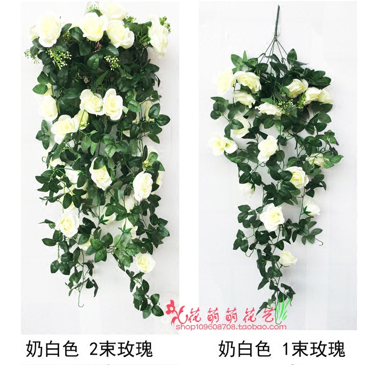 Emulated purple white rose wall-hanging flower rattan chandelia flower hanging basket flower balcony home wall decoration special price