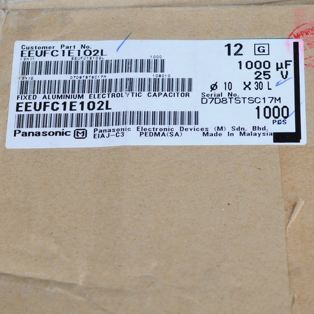 Panasonic 25V 1000UF High temperature low resistance gold word FC Fever electrolytic capacitor 105 ° volume 10 * 30