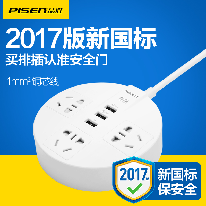 Pinsheng Smart Socket USB plug fast charge 3 hole wide seat round extension line extension line portable power wiring board