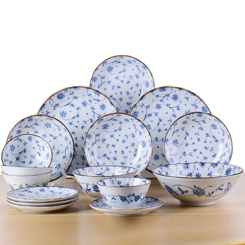 Love Pleasing Japan Imported Ceramic Japan Style Cutlery Blue Gin 16 Pieces High-end Bowls and chopsticks group The family used a bowl tray suit