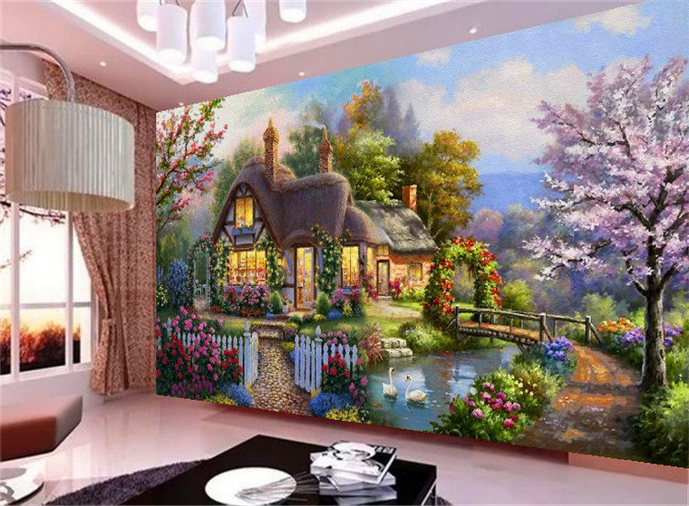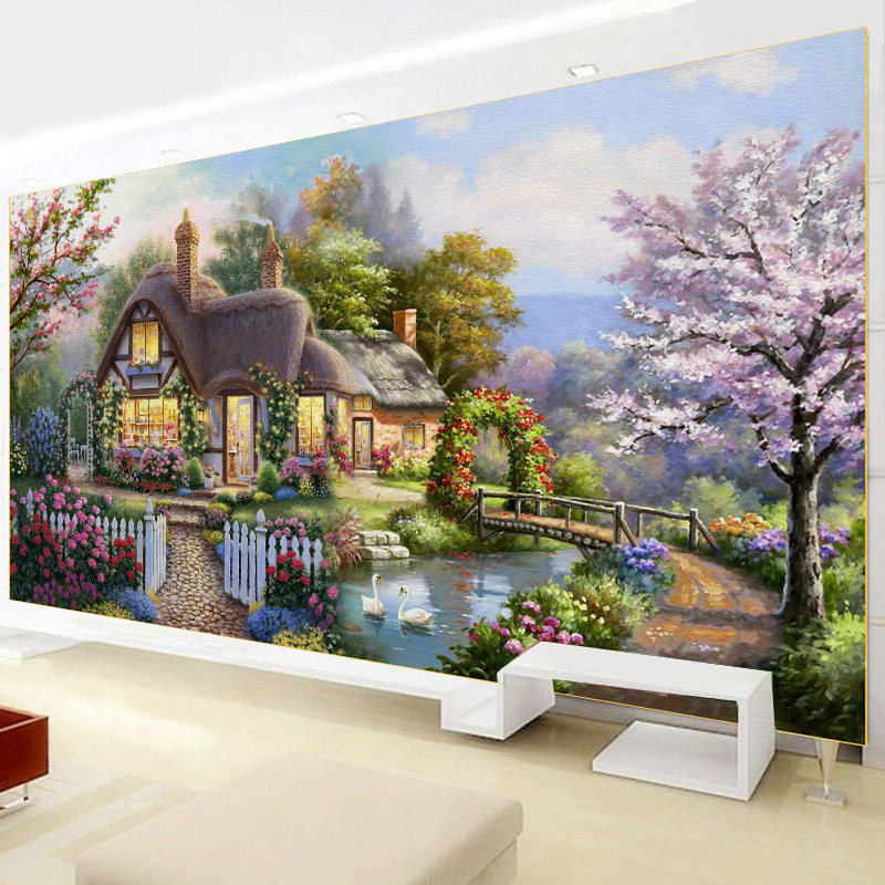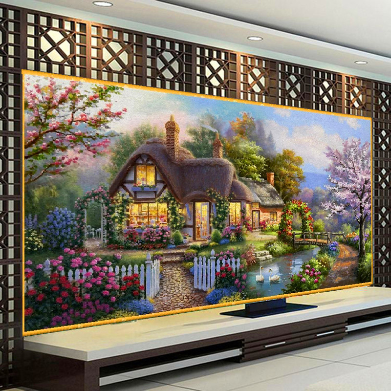 Mona Lisa print cross stitch garden cottage 2 meters cotton thread high-end dream home new living room landscape painting