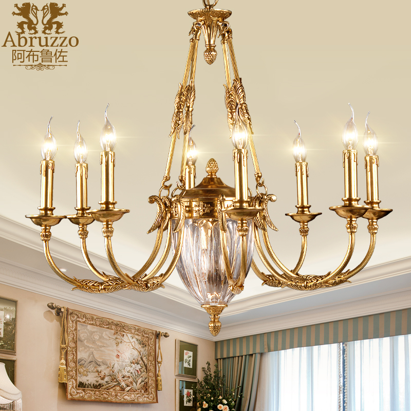 Abruzzo French all copper pure copper chandelier pastoral art copper chandelier simple European living room bedroom chandelier
