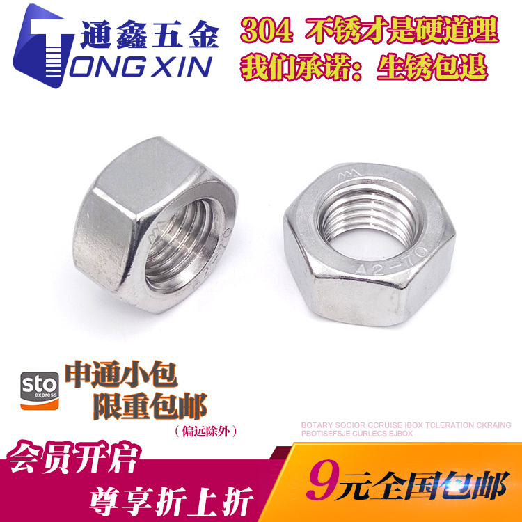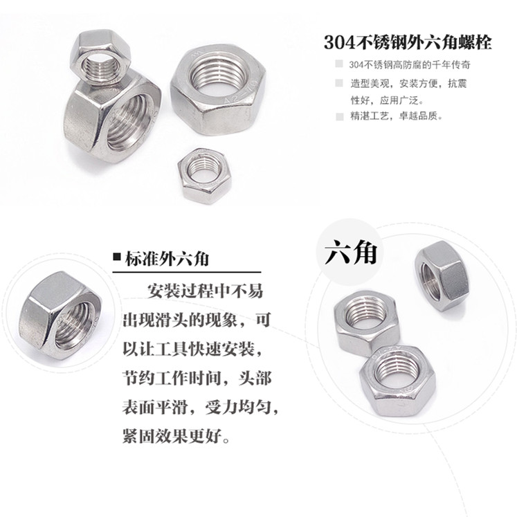 304 stainless steel hexagonal nut bolt screw cap M3M5M6M8M10M12M16M20-M30 DIN934