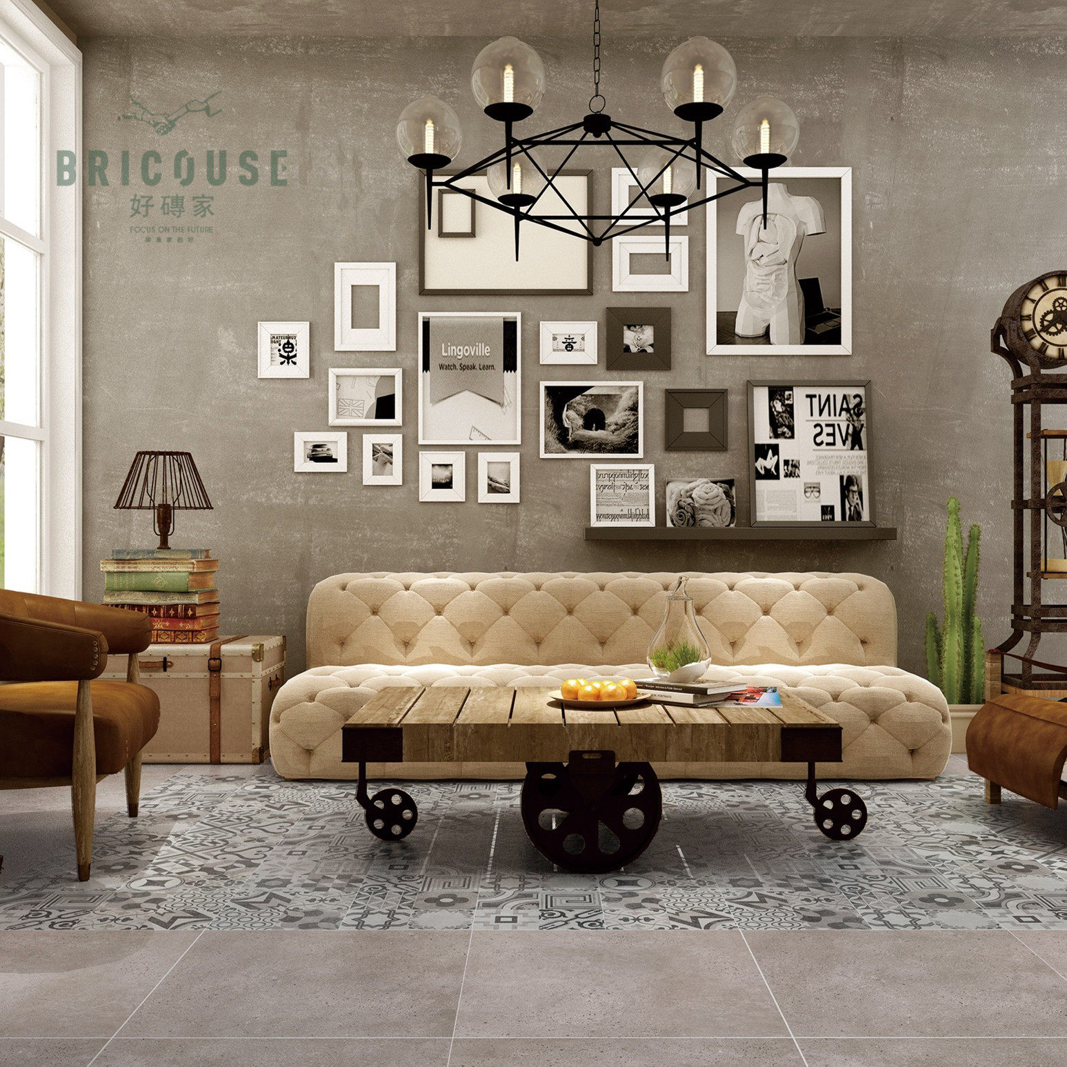 Retro gray cement brick Restaurant cafe Supermarket clothing shop Flower kitchen floor tile 300