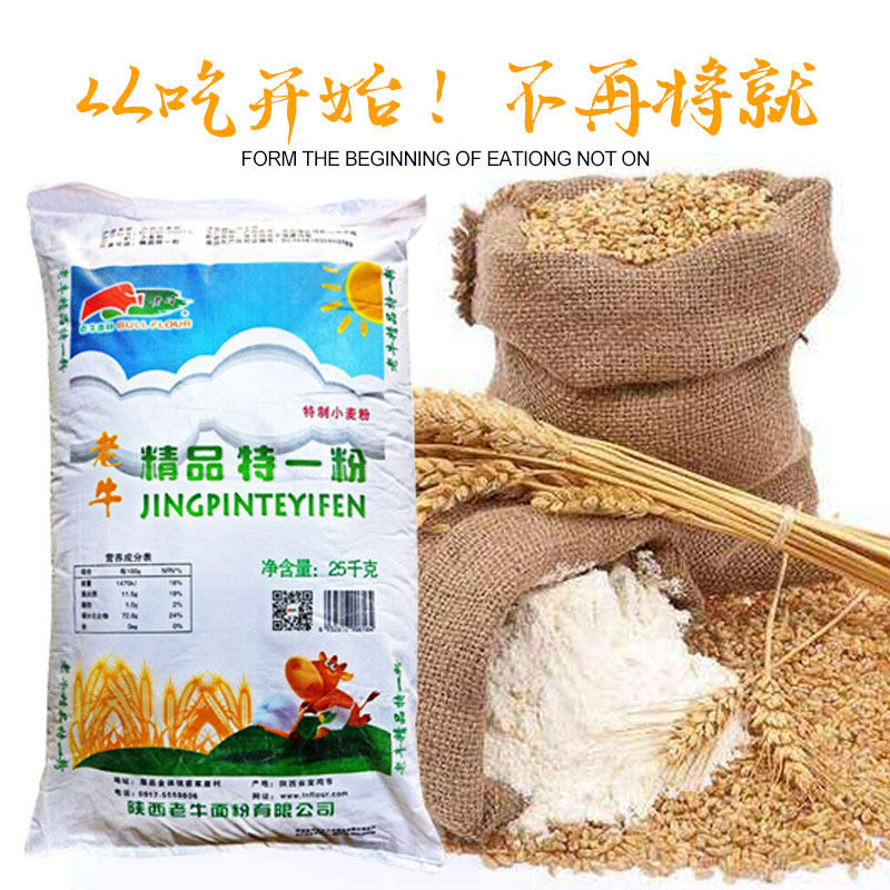 Shaanxi noodles Baoji Lao Niu wheat flour 50 catties boutique special powder winter wheat noodles dumplings steamed buns steamed pasta