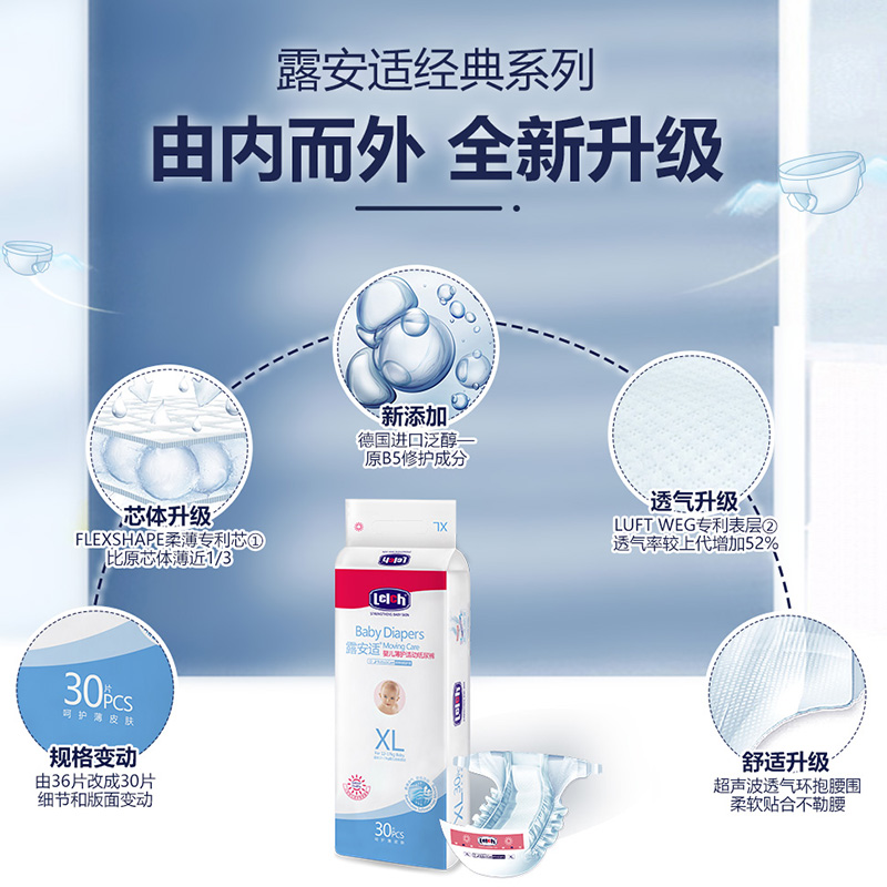 Lelch Lu Anshi baby diaper baby diaper XL size soft thin breathable close-fitting XL30 pieces daily use