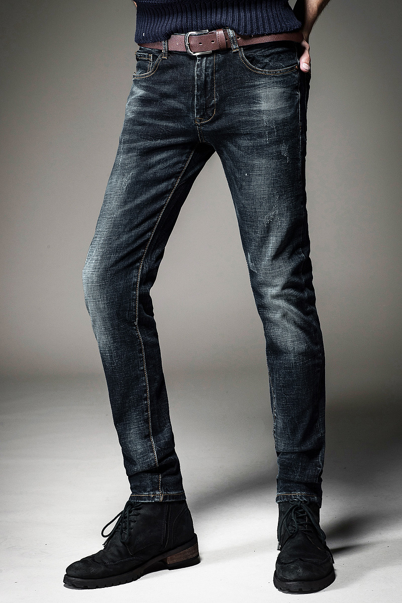 Spring and autumn youth jeans men slim-fit small feet stretch men's jeans men's straight spring long pants tide