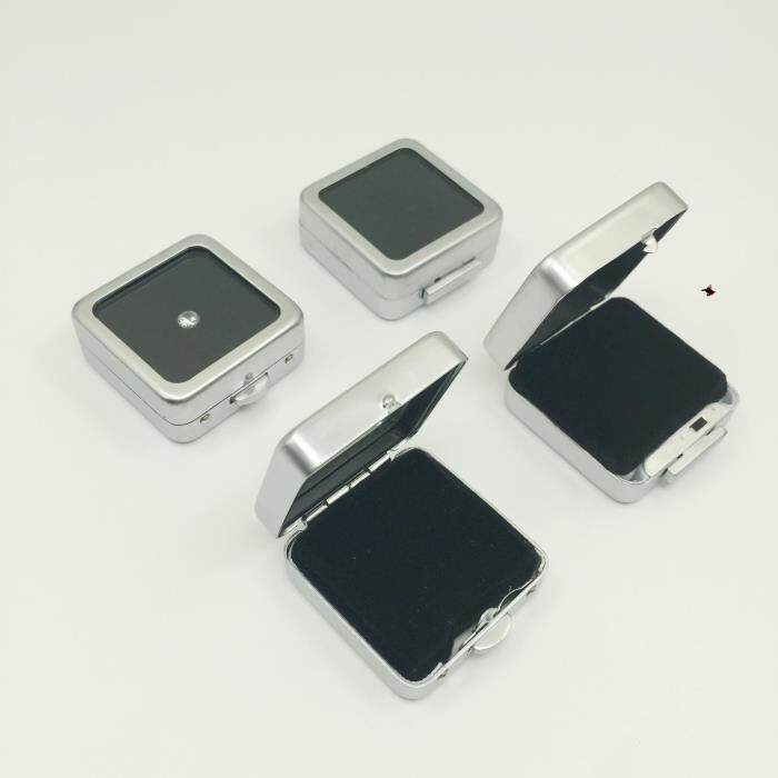 Port Type Black & White Metal Squared Iron Case Glass Transparent Case Diamond Gem Box Naked Stone Nude Drill Box Small 4 * 4