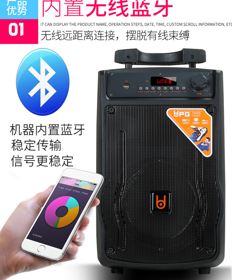 Bad Sound Pan Outdoor Large Rod Square Dance K Sound Bluetooth High Power Mobile Plug Speaker 1568