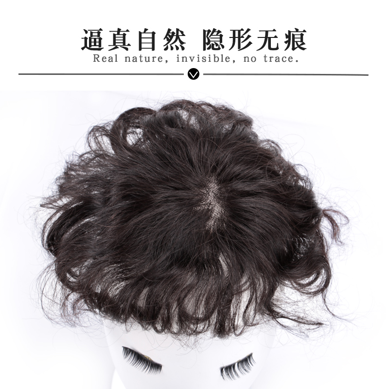 Green silk dai wig fluffy head without trace to cover white real hair patch Hand weaver thin short curly hair invisible hair patch