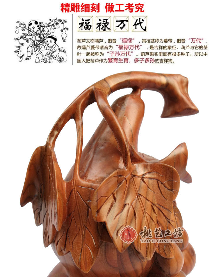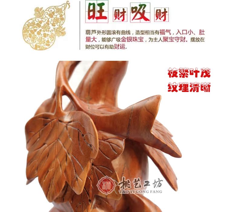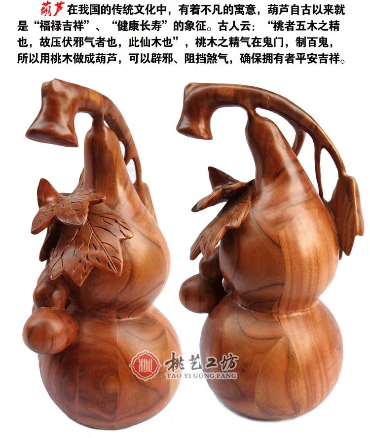 Peach Wood Carved Gourd Pendulum Piece Large Number Living Room Bedroom Fattening Town Residence of the Furniture Home TV Cabinet Craft Decorations