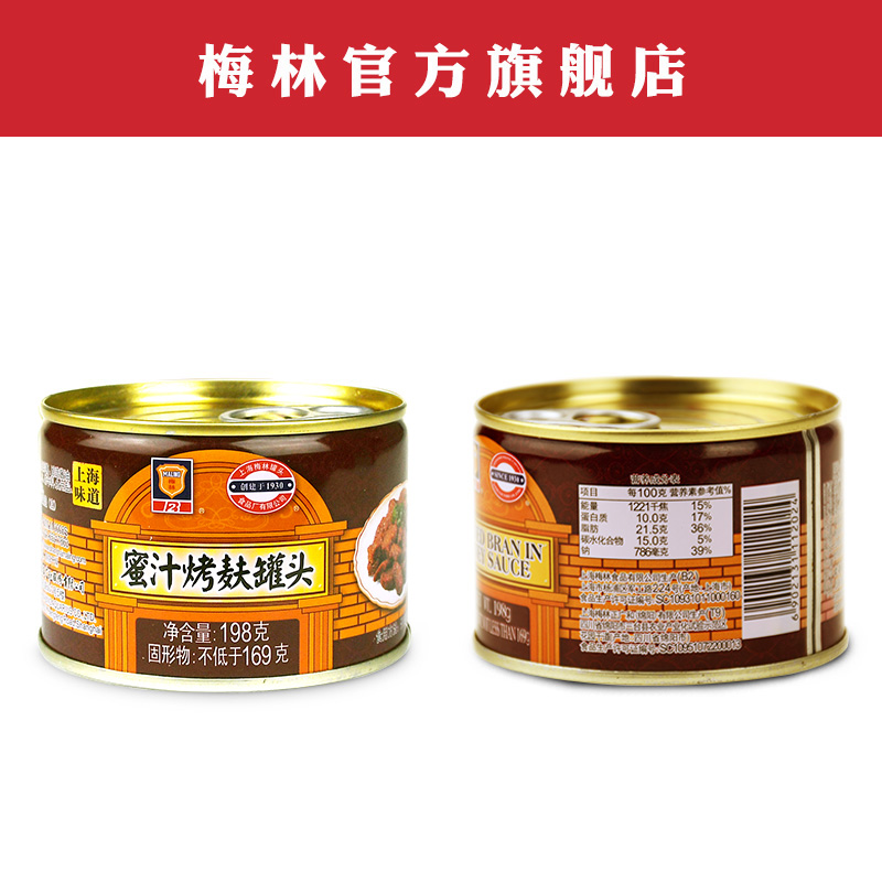 Shanghai Meilin honey roasted bran canned 198g Vegetarian ready-to-eat Vegetarian ready-to-eat nutrition