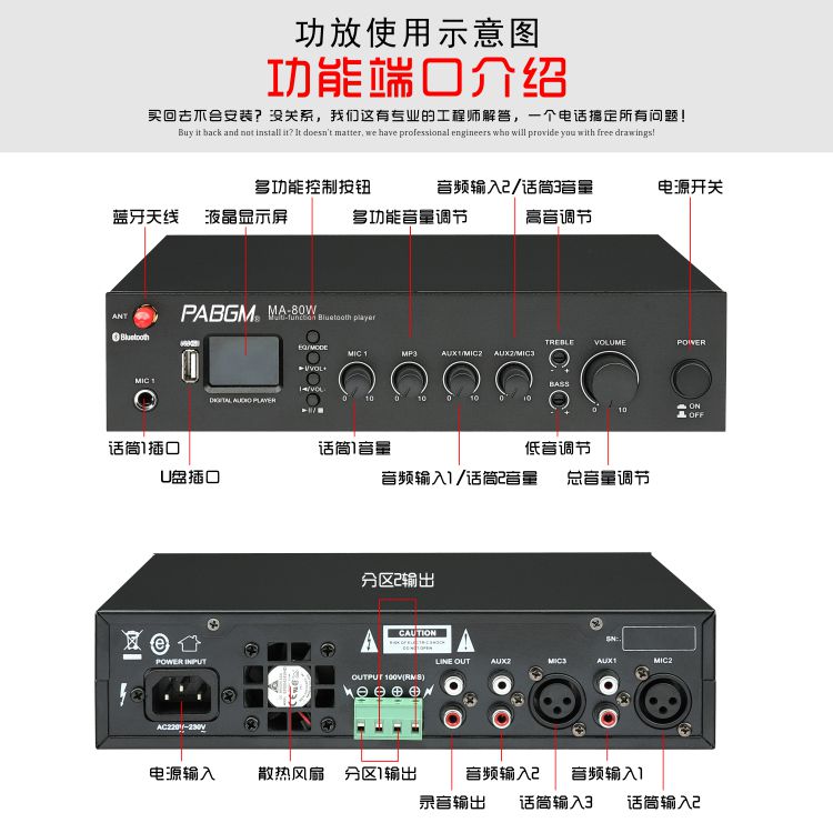 80W Mini constant pressure power amplifier 120W Background Music 180W built-in Bluetooth U pan 240W Digital player