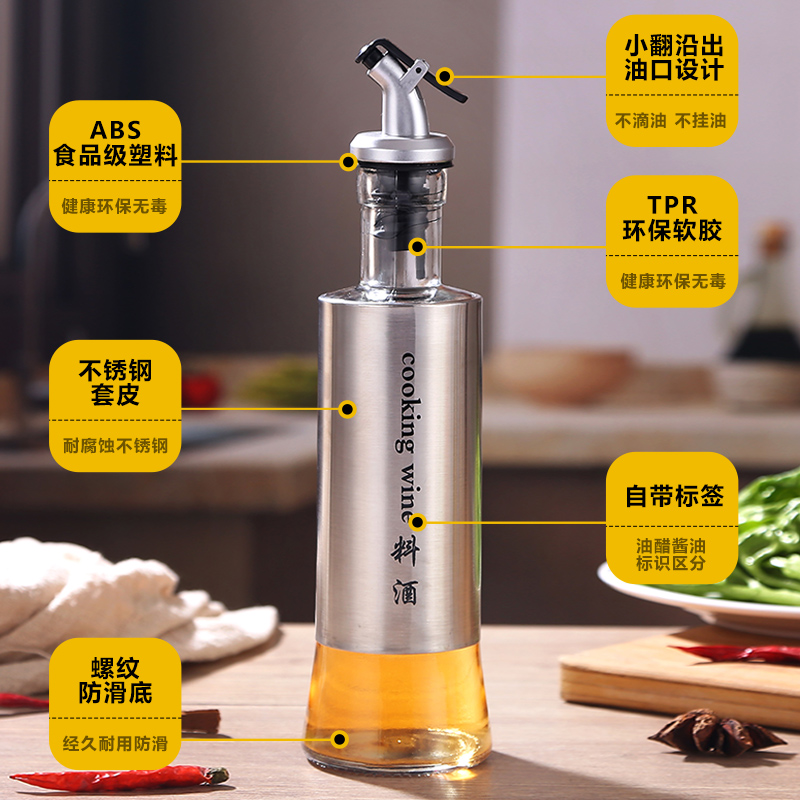Oil bottle glass bottle Home Kitchen Stainless Steel Oil Jug Thickened Sauce Vinegar Bottle Hotel With Sauce Bottle Composition Suit