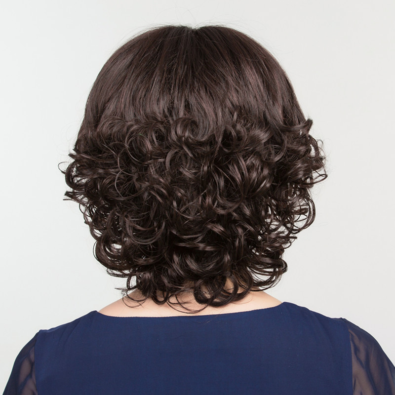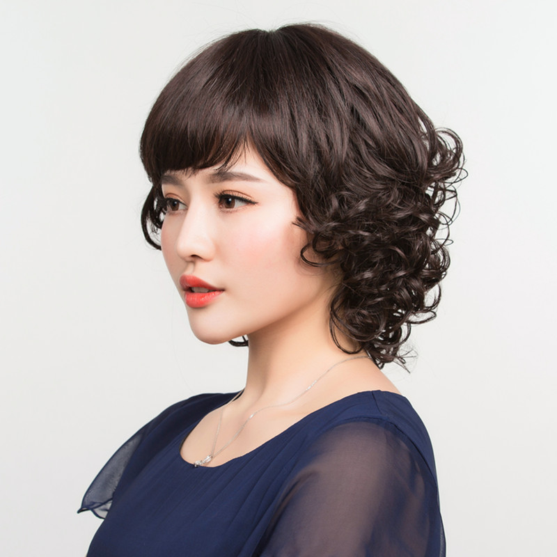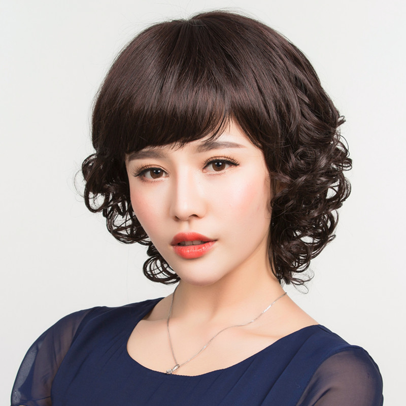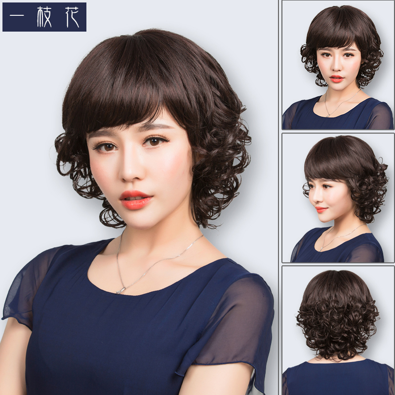A flower wig for women short hair fashion short curly hair Middle-aged mother wig set for women round face hairstyle