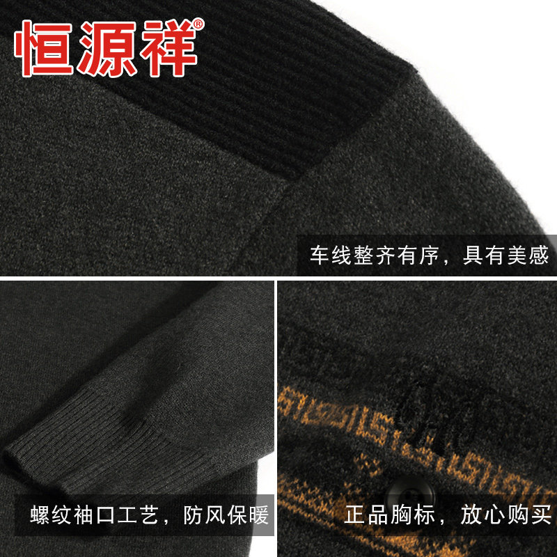 Hengyuan Xiang Sheep Sweatshirt Men's Autumn Winter New Men's Sweater Turncoats Thickened Clothes Business Middle-aged Men's Clothing Needlewear