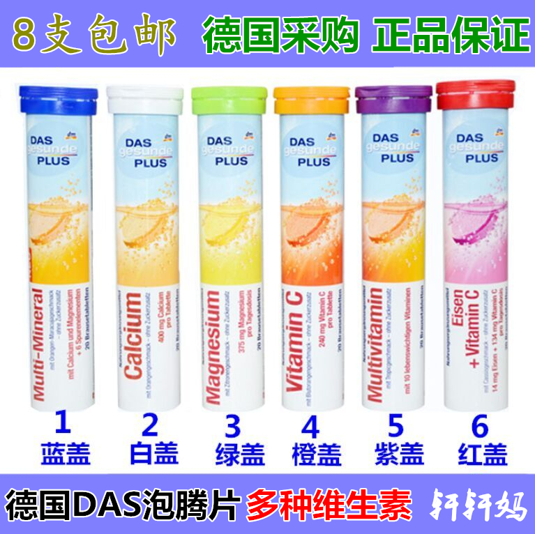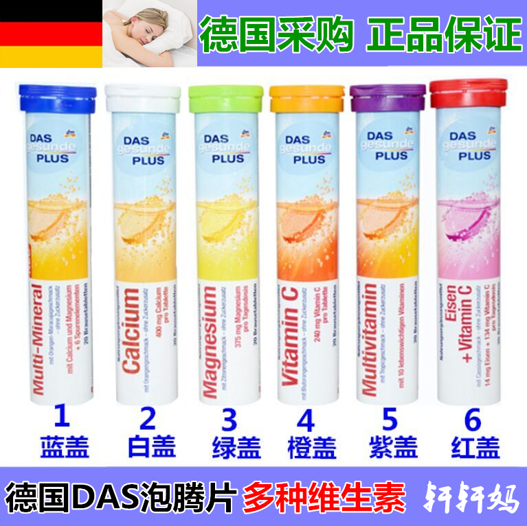 Multidimensional mineral tablets orange taste (blue cover) calcium and orange flavor (white cover) magnesium-filled tablets of lemon flavor (green cover) vitamin C tablets of blood and orange tablets