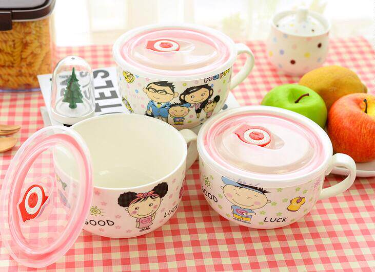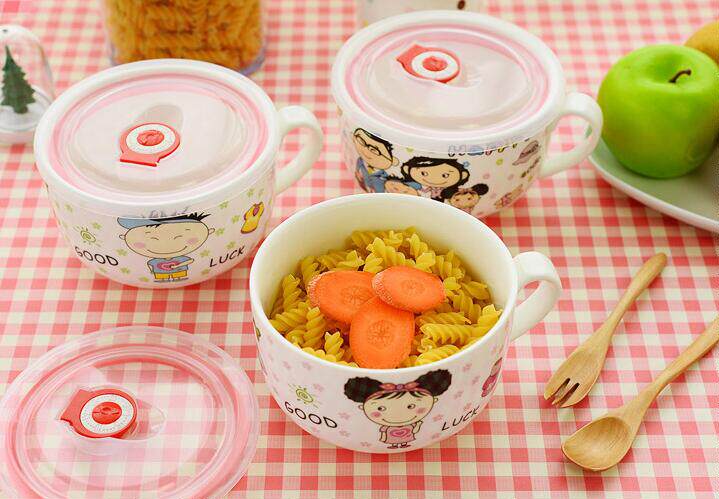 Jingdezhen ceramic fresh-keeping bowl with lid microwave oven lunch box large bowl student instant noodle bowl lunch box cute