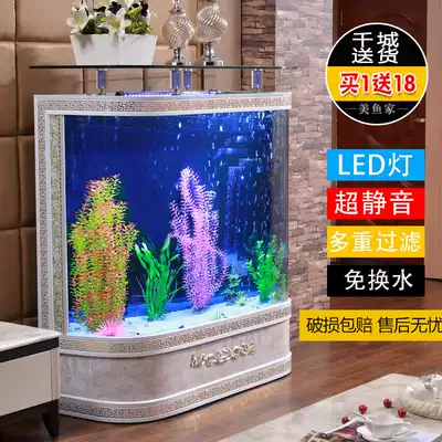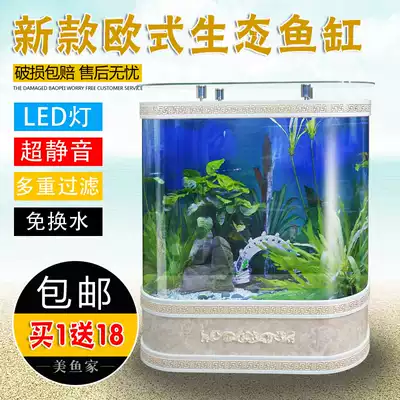 European-style fish tank aquarium double arc floor-to-wall ecological fish tank ultra-white glass free water change to send landscaping