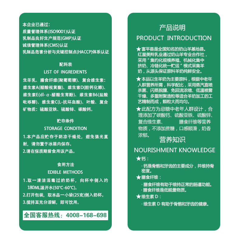(Official flagship store) Antelope milk powder for adults without sucrose for middle-aged and elderly goat milk powder 400g*2 bags