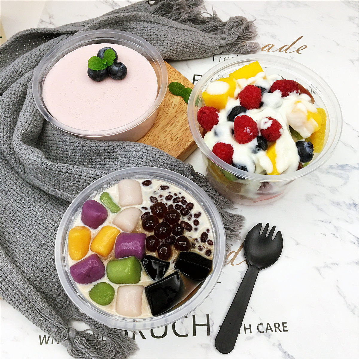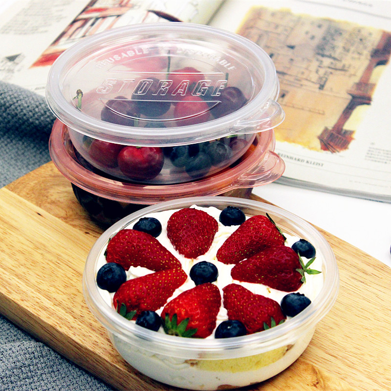 Disposable Packaging Box Round Thickened Soup Bowl With Lid Fruit Salad Dessert Thousands Of Layers Cake Out of Snack Box